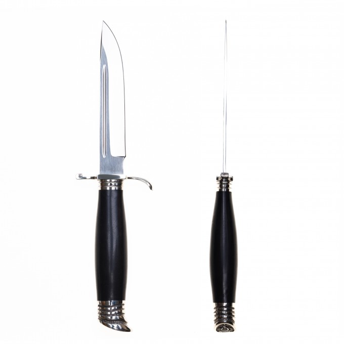 Нож НКВД "Граб Герб" - это реплика исторического ножа, который использовался сотрудниками Народного Комиссариата Внутренних Дел во времена СССР. Этот нож был разработан специально для оперативных задач и был широко распространен среди сотрудников органов безопасности. Клинок ножа изготовлен из нержавеющей стали 95х18 закаленной до 58-59 HRC, которая обеспечивает прочность и долговечность. Рукоять длиной 126 мм выполнена из стабилизированного граба, что придает ножу элегантный и прочный вид, полноразмерная гарда, защищающая руку от порезов, выполнена из мельхиора.
